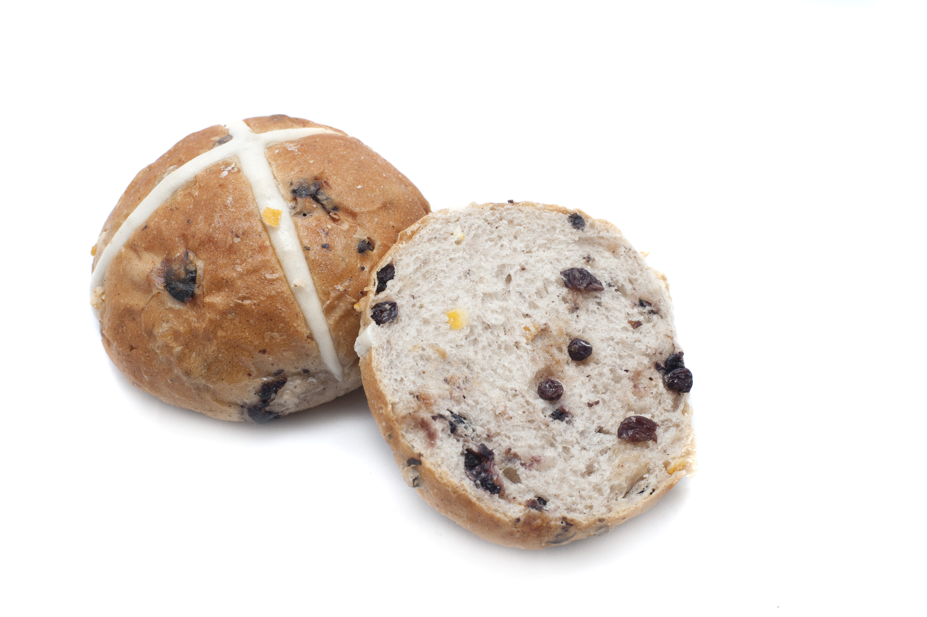 Photo: Sliced freshly baked fruity Hot Cross Bun